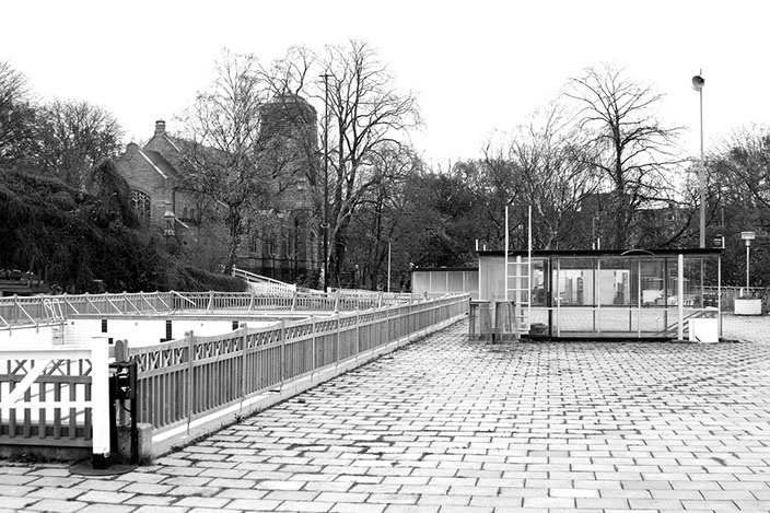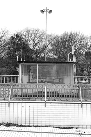 Fait accompli ist eine serielle Arbeit, die sich über verschiedene Arbeitsansätze erstreckt. Neben den hier dargestellten Bildern eines geschlossenen Freibades, gibt es auch Arbeiten über noch genutzte Freibäder, die nachts im Winter eine ähnlich verwirrende Art der Ästhetik und Verfremdung aufweisen.
