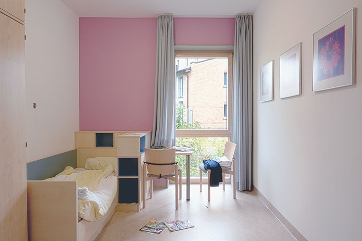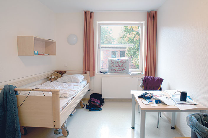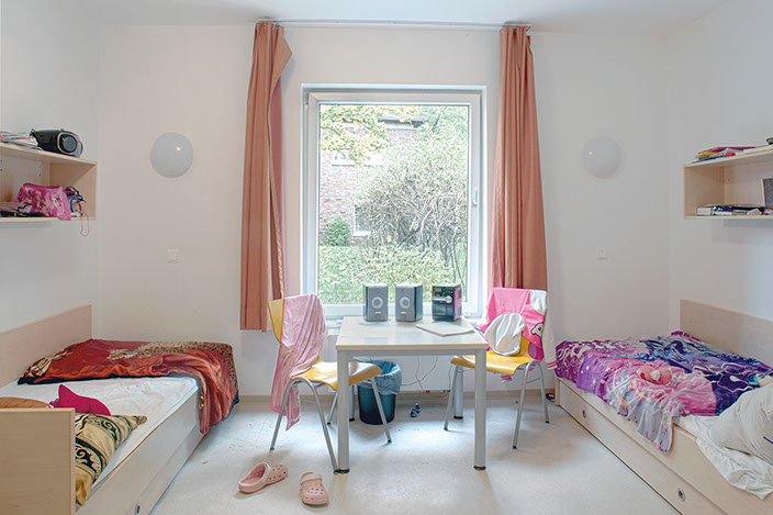 Die Arbeit zeigt die dokumentarischen Fotografien von Zimmern verschiedener Kinder- und Jugendpsychiatrien. Sie geben Einblick in die bewohnten Krankenzimmer. Hierbei tauchen verschiedene Muster auf, die sich in anderen Krankenzimmern wiederholen oder die mit Assoziationen brechen. Neben den Krankenzimmern zeigt die Serie auch Aufnahmen von Ruhe- und Krisenräumen. Ein zentraler Aspekt der Fotografien ist das Fenster. Trennt es doch die Innen- von der Außenwelt, so trennt es hier auch die Normalität des Außerhalb von der Abnormalität der eigenen Innenwelt. Das Fenster stellt eine Grenze zwischen Innen und Außen, Normal und Abnormal dar. Es läßt zwar einen Blick auf die Außenwelt zu, diese aber bleibt dem Patienten verschlossen, da sich die Fenster auf den kinderpsychiatrischen Stationen von den Patienten selbst nicht vollständig öffnen lassen. Die Arbeit zeigt den Raum, in dem sich auratische Formen manifestieren, aber auch behandelt werden und umgänglich gemacht werden. Gleichzeitig wird ein Ort gezeigt, der von der Gesellschaft tabuisiert wird und dadurch vorbelastet ist, dem eine Fülle an Vorurteilen voraus eilt. Durch das Unwissen über den Ort (Psychiatrie) wird dem Raum (Krankenzimmer) eine bestimmte Vorstellung zugeschrieben, wie dieser Raum vermeintlich ist. Raum (franz. Espace) und Ort (franz. Lieu) stehen hierbei in engen Zusammenhang, da sie sich gegenseitig bedingen. Die Stabilität des Ortes Psychiatrie beherbergt den sich verändernden Raum des Krankenzimmers, der dem Ort seine Referenz verleiht.